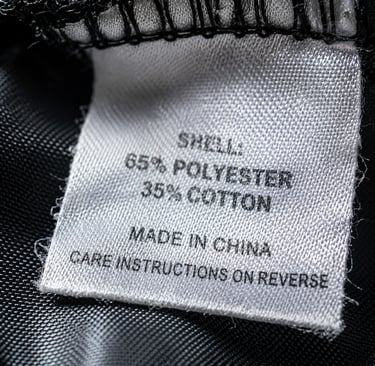 Fiber content is listed by percentage in descending order. The first fiber listed is the dominant one. If polyester, nylon, elastane, or spandex appears anywhere in that list, the garment has a synthetic chemical profile regardless of what the marketing copy emphasizes. Percentage matters in ways that "made with" language deliberately obscures.